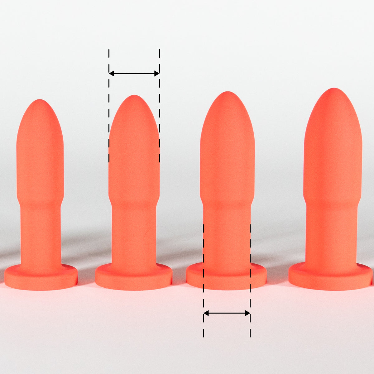 For those looking to accommodate a penis-owning partner, Slo.Mo covers the full spectrum. Size 1 matches the 5th percentile of erect penile girth, while Size 7 represents the upper 95th percentile. No matter where you're aiming, we've got a plug for your goals.